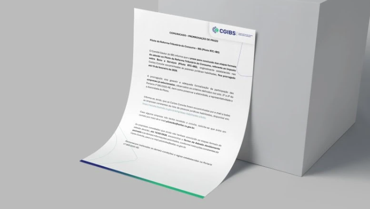 O Comitê Gestor do Imposto sobre Bens e Serviços (IBS) anunciou a prorrogação do prazo para a conclusão das etapas formais de adesão ao Piloto da Reforma Tributária do Consumo – Piloto RTC-IBS. Inicialmente previsto nas Cartas-Convite enviadas às pessoas jurídicas habilitadas, o novo prazo passa a ser 15 de fevereiro de 2026.