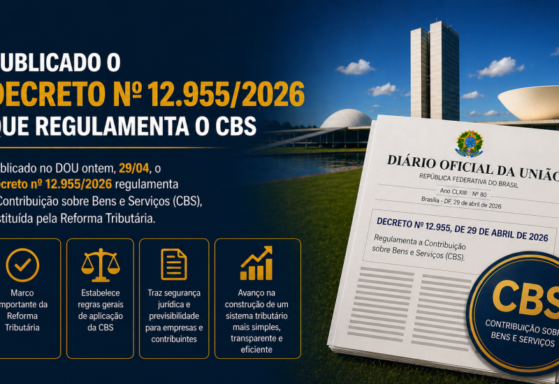 O Poder Executivo Federal publicou, em 30 de abril de 2026, o Decreto nº 12.955/2026, norma responsável por regulamentar a Contribuição sobre Bens e Serviços (CBS), tributo instituído pela Lei Complementar nº 214/2025 dentro da estrutura da Reforma Tributária do consumo. O decreto inaugura o detalhamento operacional do novo tributo federal ao disciplinar conceitos essenciais como hipóteses de incidência, base de cálculo, momento do fato gerador, contribuintes, responsabilidade tributária e critérios de apuração.